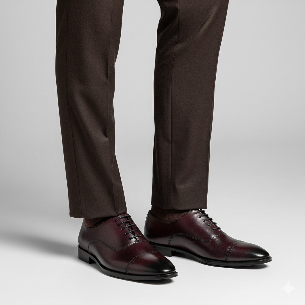 Burgundy Oxford - The iconic Oxford made for everyday wear with style statement. Made from full-grain leather with a smooth, polished finish, it brings a clean and classic touch to any outfit you wear. Each pair is carefully handmade by skilled experts craftsmen to ensure the perfect fit, durability, and attention to detail to make your experience even more special. The finished lightweight outsole and extra padded inner soft cushion insole provide you all-day comfort and support, making it ideal for long hours of wear. Whether you’re dressing up for work, meetings, or special occasions, this pair adds the charm and class to your look. Simple, stylish and classy.
